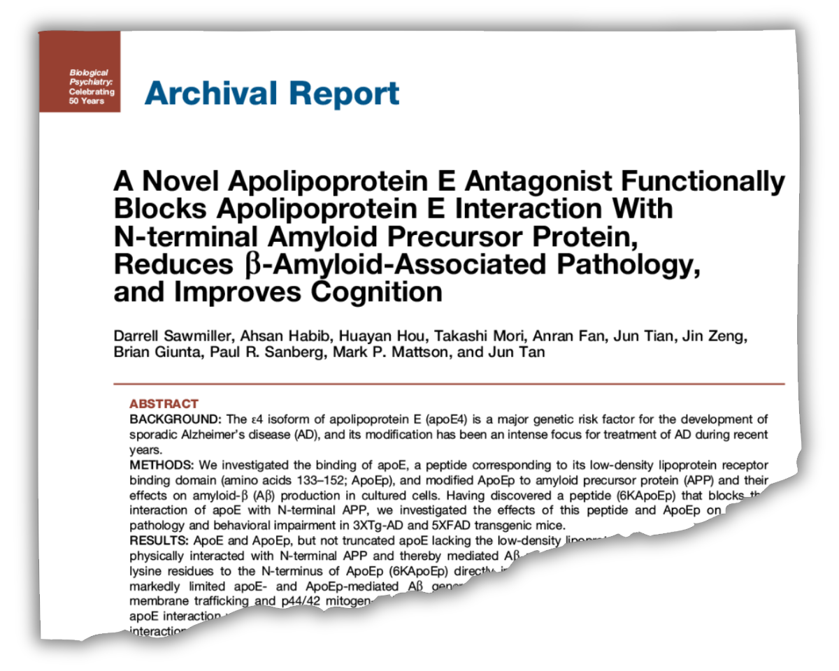 The paper, published in Biological Psychiatry, describes the potential of an apoE antagonist for treatment in Alzheimer’s disease.