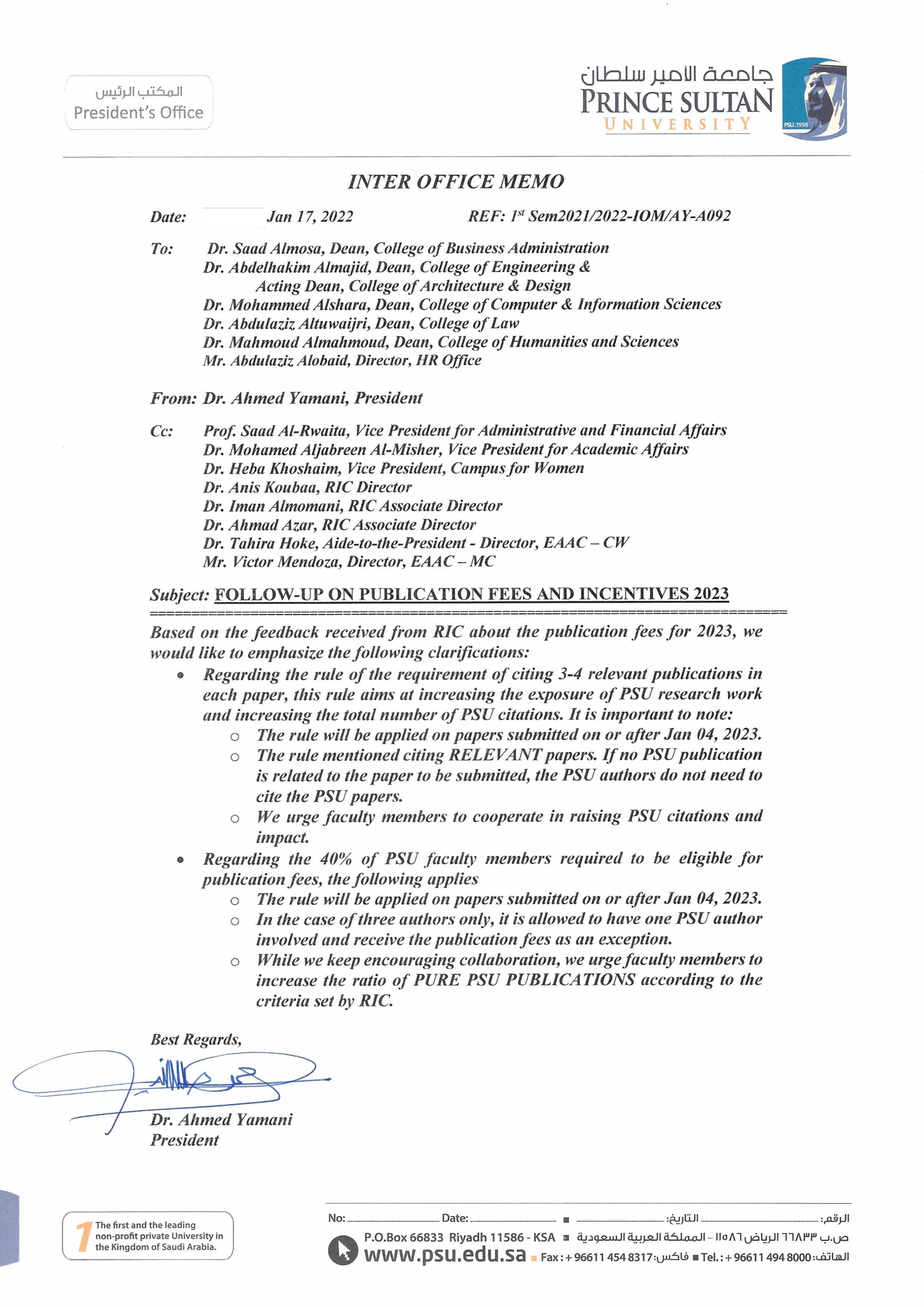 The memo, titled “Follow-up on publication fees and incentives 2023,” added, “If no PSU publication is related to the paper to be submitted, the PSU authors do not need to cite the PSU papers.” It continued, “We urge faculty members to cooperate in raising PSU citations and impact.”