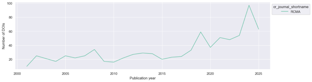Fraisier-Vannier, a computer science professor at Toulouse University, shared stats specific to RCMA, including a more-than-doubling in annual publication volume since 2018, from 22.6 in the years 2001-2017 to 55.3 each year since 2018.