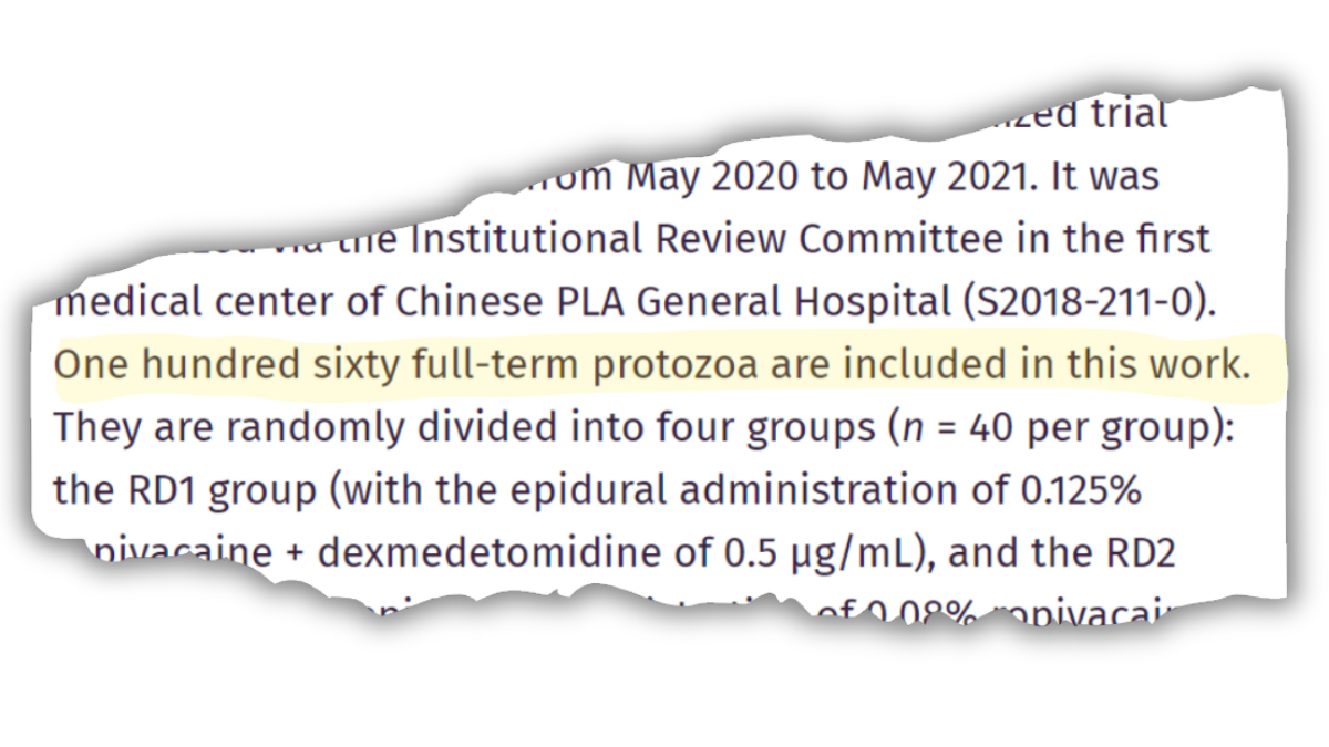 There were many red flags. Most of the studies had been registered on the same day Medicine received the manuscripts. In some registrations, the dates of first and last participant enrollment were the same. And for many studies with different authors, the user who registered them was listed as “qsw erre.” The abstract of a paper on analgesia in women giving birth contained the sentence: “One hundred sixty full-term protozoa are included in this work.”