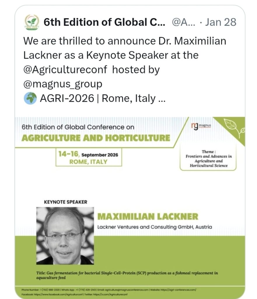 Lackner had been listed as a keynote speaker at the Global Conference on Agriculture and Horticulture this September, but is no longer listed on their site. The organizers have not responded to a request for comment, nor has Lackner.